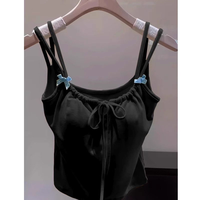 美式甜酷黑色辣妹吊带背心女夏2025新款内搭chic无袖外穿短款上衣