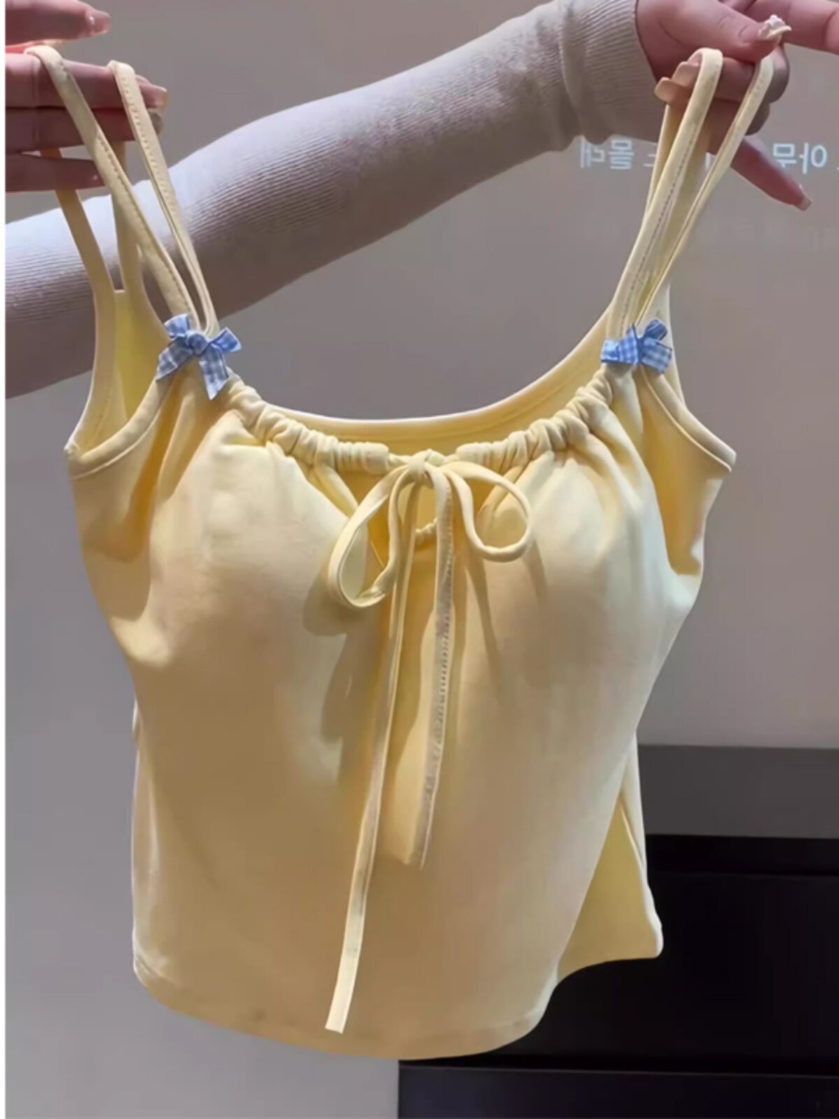 辣妹U领正肩短袖t恤女夏季2025新款显身材纯欲黄色茶艺风低领上衣